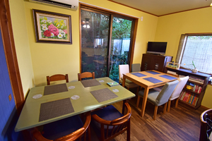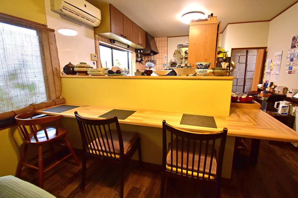 テーブルや椅子など、インテリアの多くはお客様からのいただきもので、思い出が詰まった家具や器たちが居心地の良さを演出しています。まるで実家に帰って来たような感覚で、気取らずゆっくりとお過ごしください。