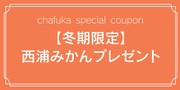 特典内容 | 「チャフカ見ました」と店員さんに伝えると、西浦みかんをプレゼント!※冬期限定 |