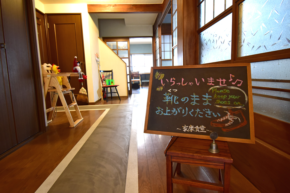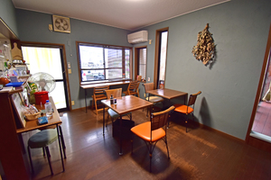 古民家を活用した、どこか懐かしい雰囲気になっています。靴のまま気軽に利用できますので、アットホームな雰囲気の中で、落ち着いてお食事をお楽しみください。