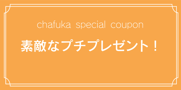 | 特典内容 | 「チャフカ見ました」と店員さんに伝えると、素敵なプチプレゼント! |