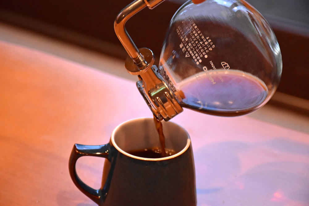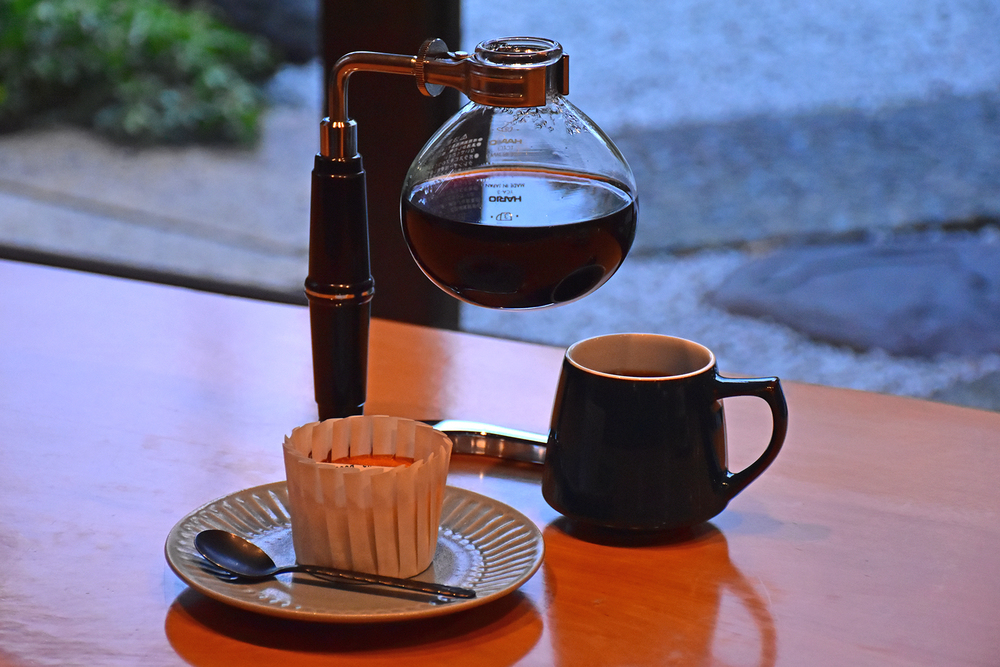 丁寧に淹れてくれるサイフォン式コーヒーを、静かに時間が流れる極上空間で♪