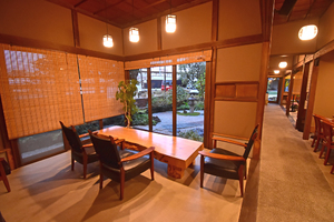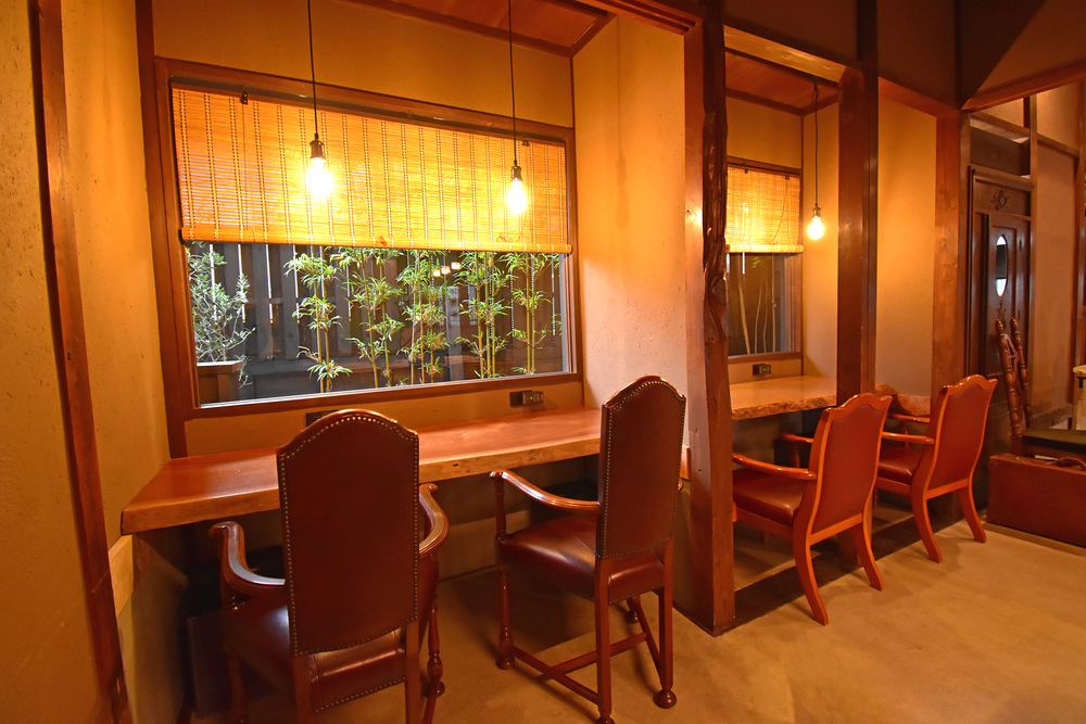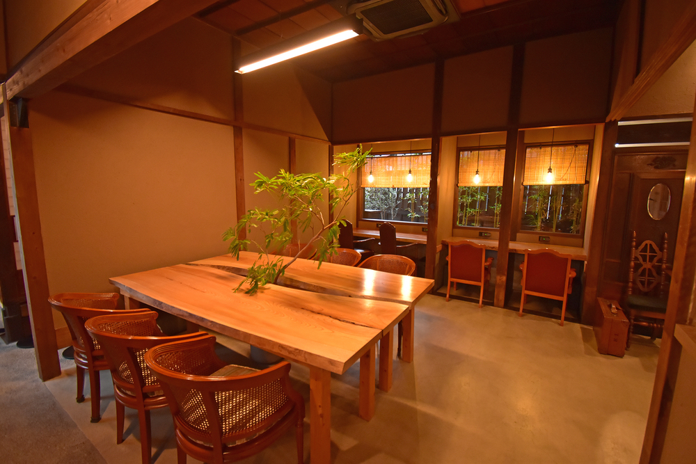 築約100年の古民家をほぼ当時のまま活用した店内は、木の温もりと静けさに包まれた落ち着いた空間になっています。中庭を眺めながら過ごせる席もあり、時間の流れがゆっくりと感じられます。