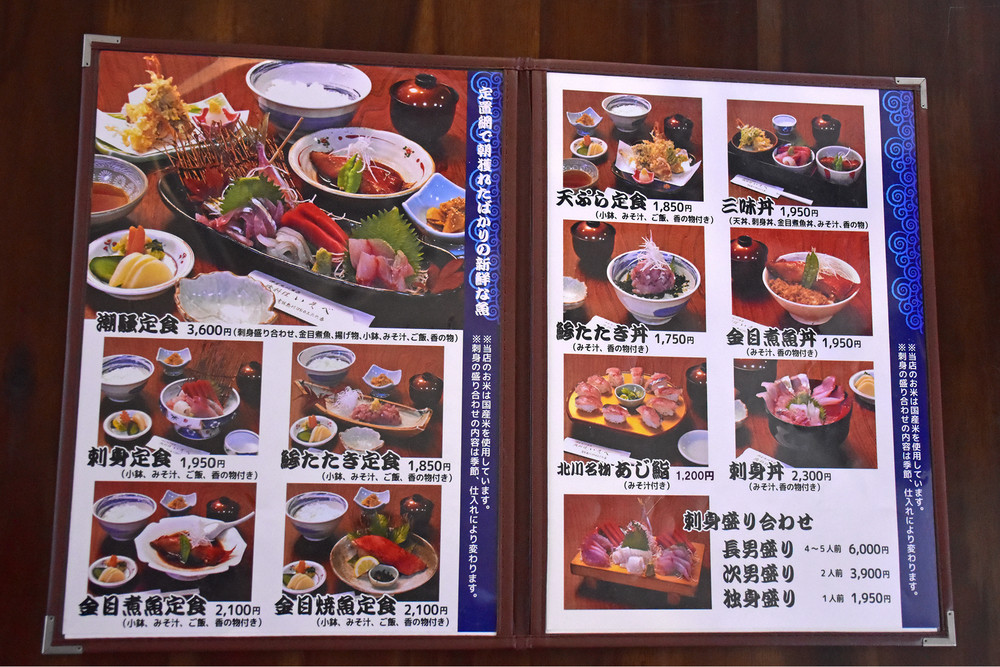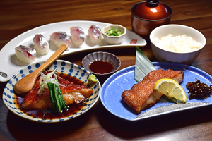 定置網漁で水揚げされる地魚を中心に、とれたての海の幸を使用しています。鮮度はもちろん、仕入れから調理まで一つひとつ丁寧に向き合い、海の恵みをそのまま味わえる料理を提供しています。