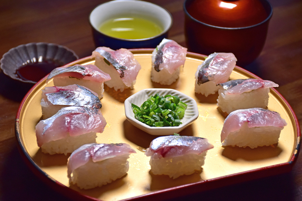 【北川名物あじ鮨】脂の乗ったアジに、甘酢ガリと青じそを合わせた、さっぱりとした味わい♪