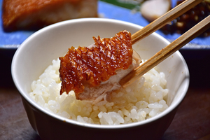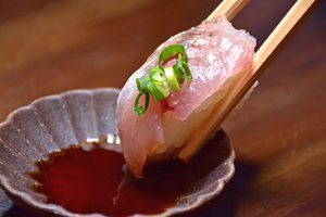 イチオシは、北川温泉の郷土料理として親しまれる名物「北川あじ鮨」です。獲れたての新鮮なあじを使用し、甘酢のガリと青じそを合わせた、さっぱりとした味わいが特徴です。ひとくちサイズで食べやすく、鰺・薬味・酢飯が一体となった絶妙なバランスをお楽しみください。その他にも金目鯛やイセエビなど、地元の海の幸を贅沢に味わえるメニューが揃っています。