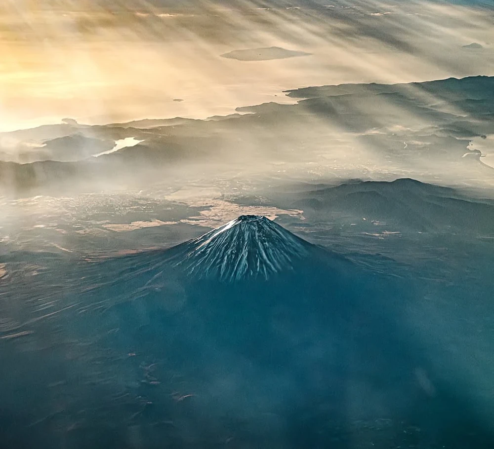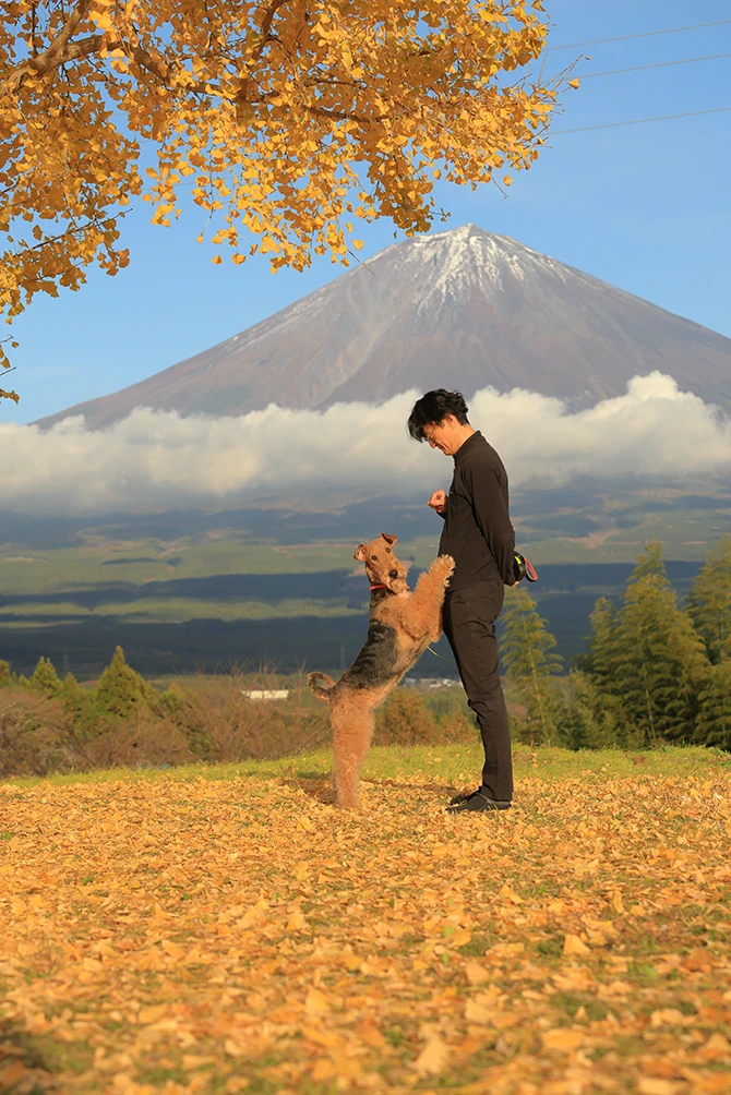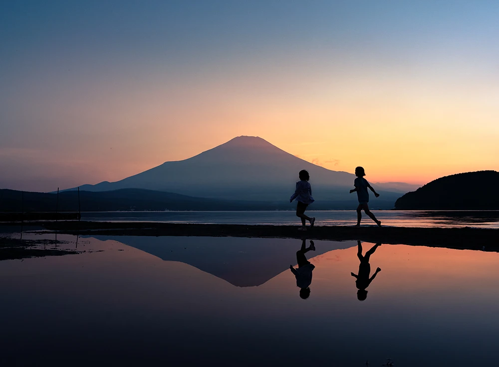 富士山に対する人物の配置や演出力、撮影条件、