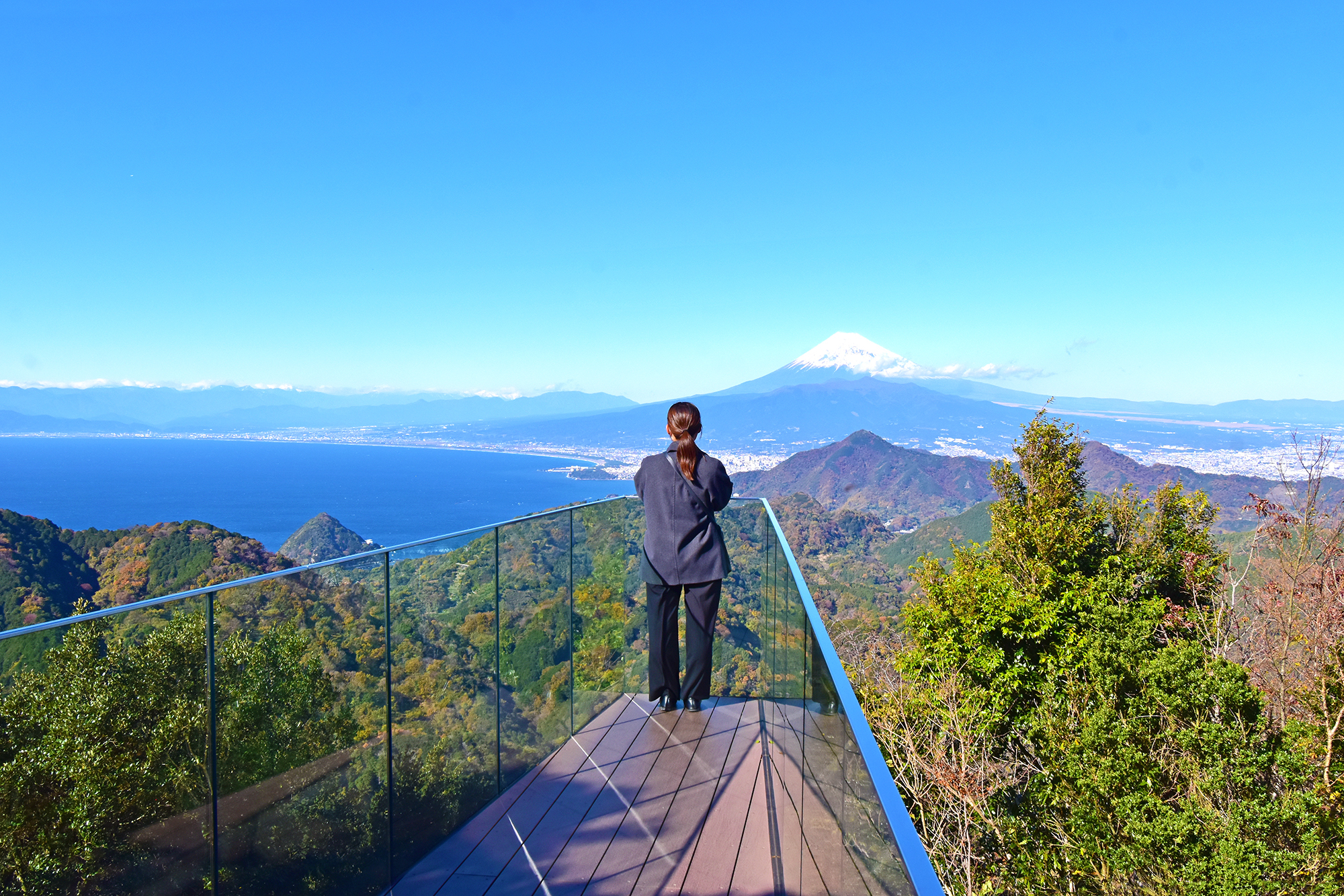 | コメント | ロープウェイで山頂へ向かうと、そこに広がるのは駿河湾と富士山を望む大パノラマ!空に近い展望デッキでは、時間帯や季節によって表情を変える景色をゆったりと楽しめます。山頂には足湯やカフェもありますので、絶景を眺めながらのんびり過ごしてみてはいかがでしょうか♪ |