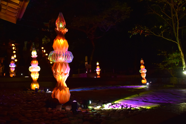 コメント | 久能山東照宮では、毎秋恒例で夜間特別拝観イベントを開催していますが、今年度より「国宝 久能山東照宮 夜間特別拝観 光彩-IRODORI-」へ大幅リニューアル!“折り紙“をテーマにした幻想的なライトアップを新たに導入し、歴史文化と現代アートが融合した非日常的な夜を楽しめます♪ |
