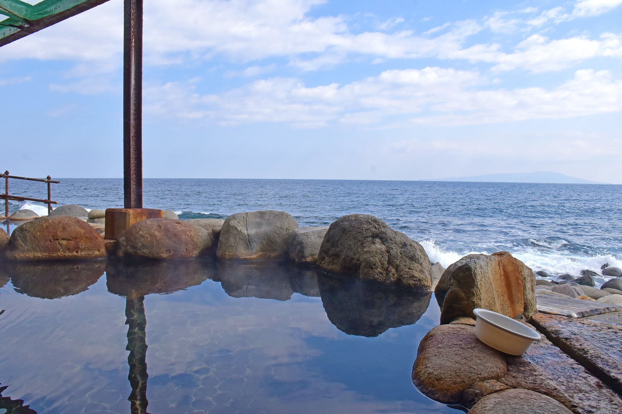 波の音をBGMにして浸かる温泉は、まさに非日常!